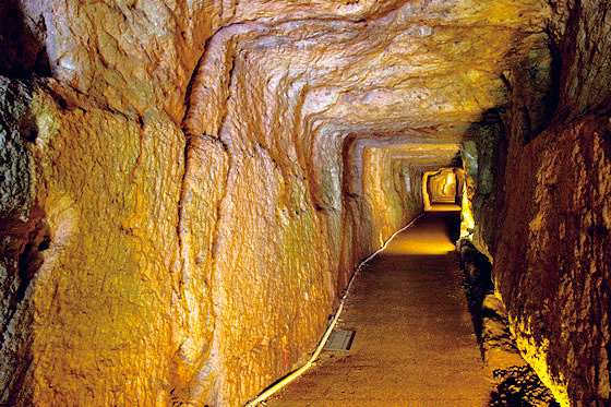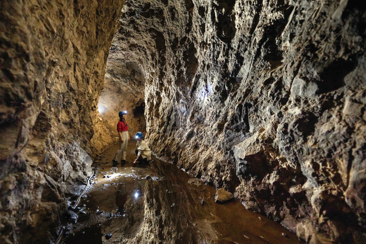 江戸時代中期に銀を採掘した全長約600mの坑道、「龍源寺間歩」を案内。